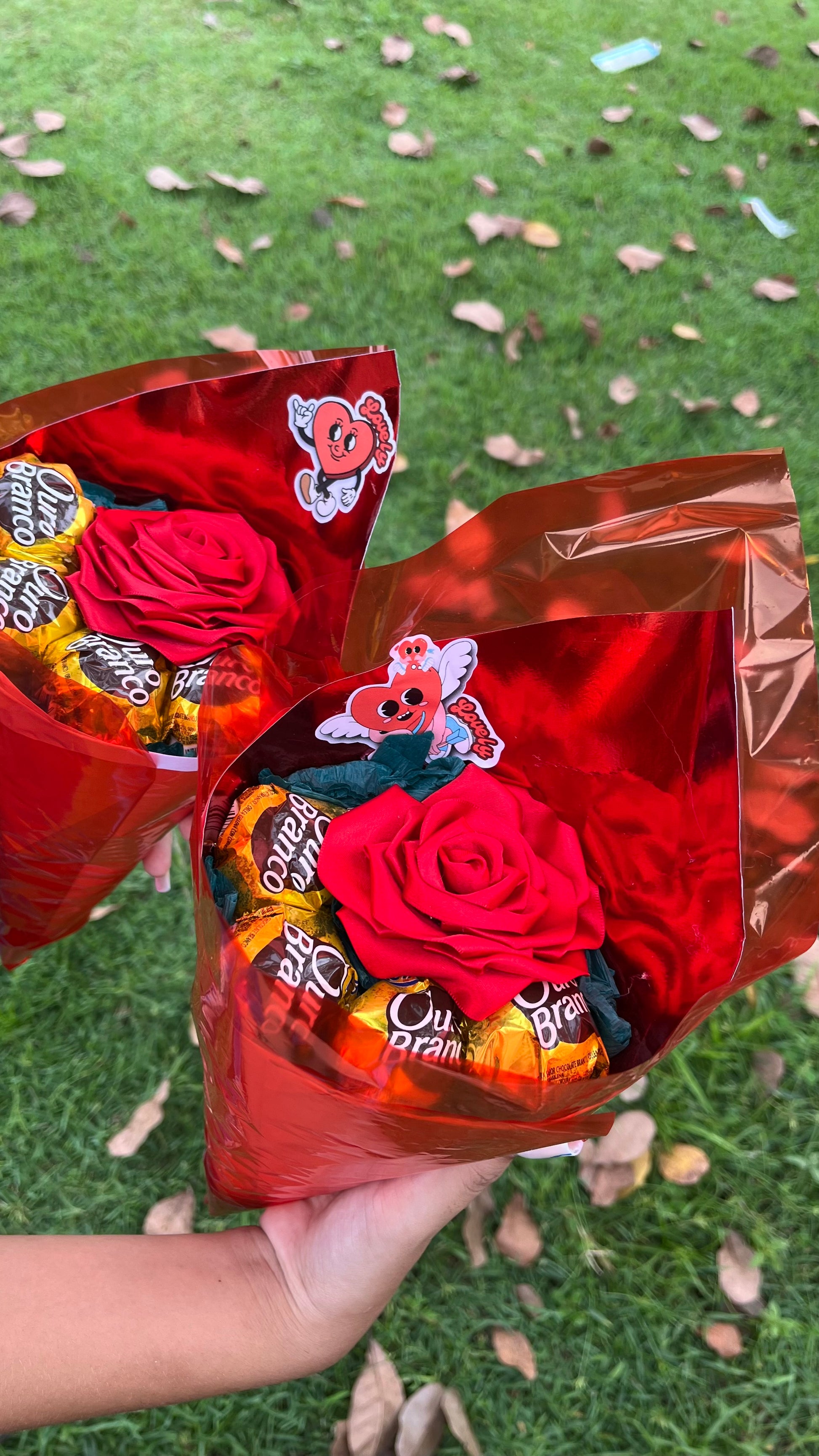 Podemos modificar a cor da rosa, o tipo de bombom ou até adicionar um bilhetinho com sua mensagem!